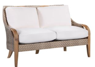 Modern design with sweeping lines. “Finger joint” frame work. Synthetic wicker color that is intended to blend well with both the teak in its new coloration, and the “silver” it becomes as it is exposed to the sun