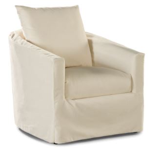 Removable slipcover with serged edges on all seams. Machine wash and line dry. Cast aluminum legs. Motion swivel base.