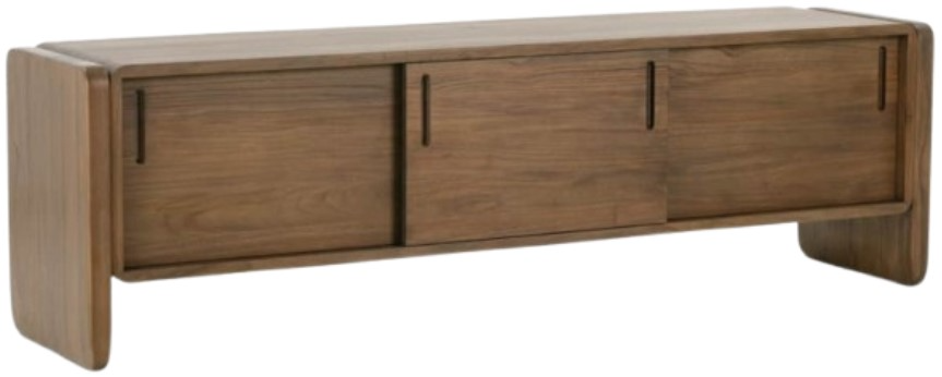 The rounded edges and substantial solid-wood construction create an inviting presence that softens contemporary spaces, making it equally at home in a dining room, living area, or sophisticated home office. Its versatile design serves as both a functional storage solution and an artistic statement, with the wood's natural grain patterns creating a subtle dance of texture across its surface that adds depth and visual interest to any interior setting.