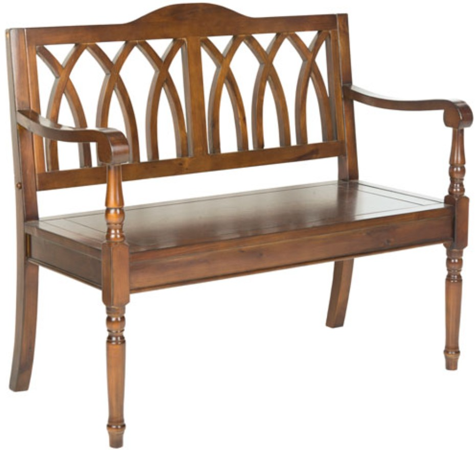The Benjamin Bench takes a classic garden form and transports it indoors. Elegant finials on the sides and arms with a back motif inspired by Gothic architecture transform its pine wood frame in a dark teak finish into a striking statement appropriate for any interior.Read More