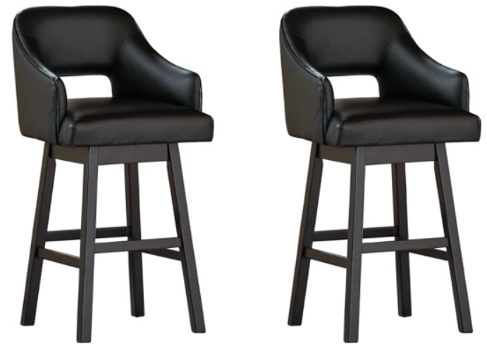 This striking barstool invites you to take contemporary modern style for a spin. Comfortably cushioned seat, self-returning swivel and contoured back make it beautifully in tune with your needs. Luxurious faux leather upholstery is a sensational touch.Read More