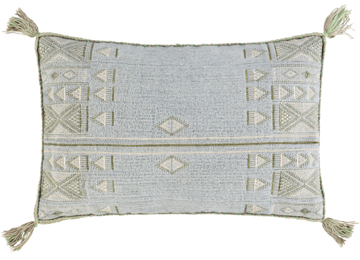 The Sabra Medium Gray 22" x 14" Toss Pillow from Surya features a down insert, tassel design, and is made in India.