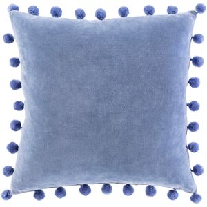 The Serengeti Denim 20" x 20" Toss Pillow from Surya features a down insert, Pom Pom design, and is made in India.