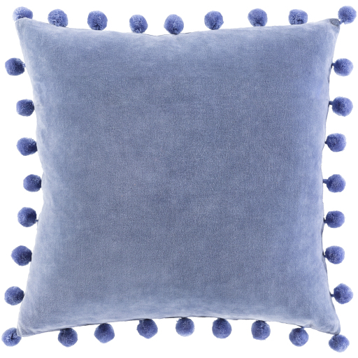 The Serengeti Denim 20" x 20" Toss Pillow from Surya features a polyester insert, Pom Pom design, and is made in India.