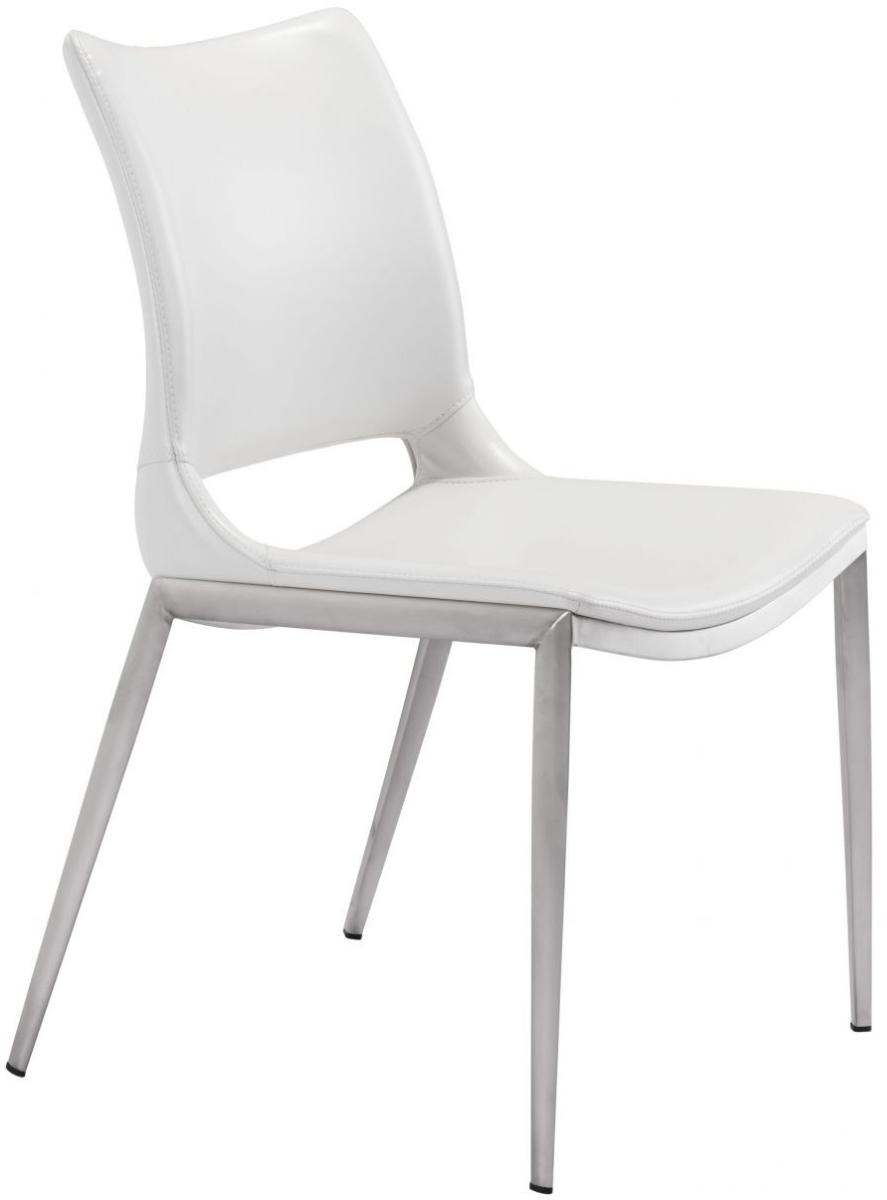 The white faux leather seat is beautifully stitched adding a designer detail to a simple profile