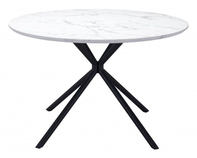 The top is a durable MDF laminate top with a marble print and steel legs powder coated in black.
