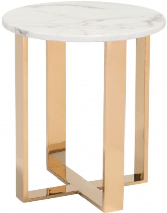 Perfectly petite and undeniably elegant; the Atlas end table features a slim cross style base in stainless steel finished in bright Gold; supporting a stunning faux marble round top.Read More