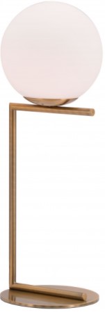 Pure Geometry. A modern round globe balances on a simple linear plane to create this luminous table lamp. Its minimalist silhouette perfectly compliments the most modern spaces and will add simplicity to a more eclectic mix. Evenly distributes light to fill any room with a perfect glow. Place it on an accent table or desk. Starter Bulb is included.Read More